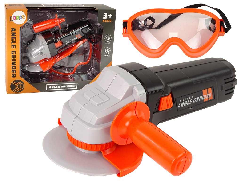Nástroje jsou skvěle vyrobené a zpracované, kompletně z plastu. Velikost nástrojů je přizpůsobena malým rukám. Bruska je černo-oranžová, se šroubovací rukojetí pro pohodlnější úchop. Po posunutí posuvníku se kotouč otáčí okolo své osy. Pro zajištění bezpečnosti stačí nasadit ochranné brýle a můžete začít pracovat.