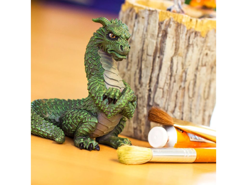 Figura prikazuje »mrzutega« zmaja s spuščenim izrazom in posmehljivimi ustnicami. Kljub videzu jeze je ta zmaj v izvedbi proizvajalca neškodljiv in primeren za igro.