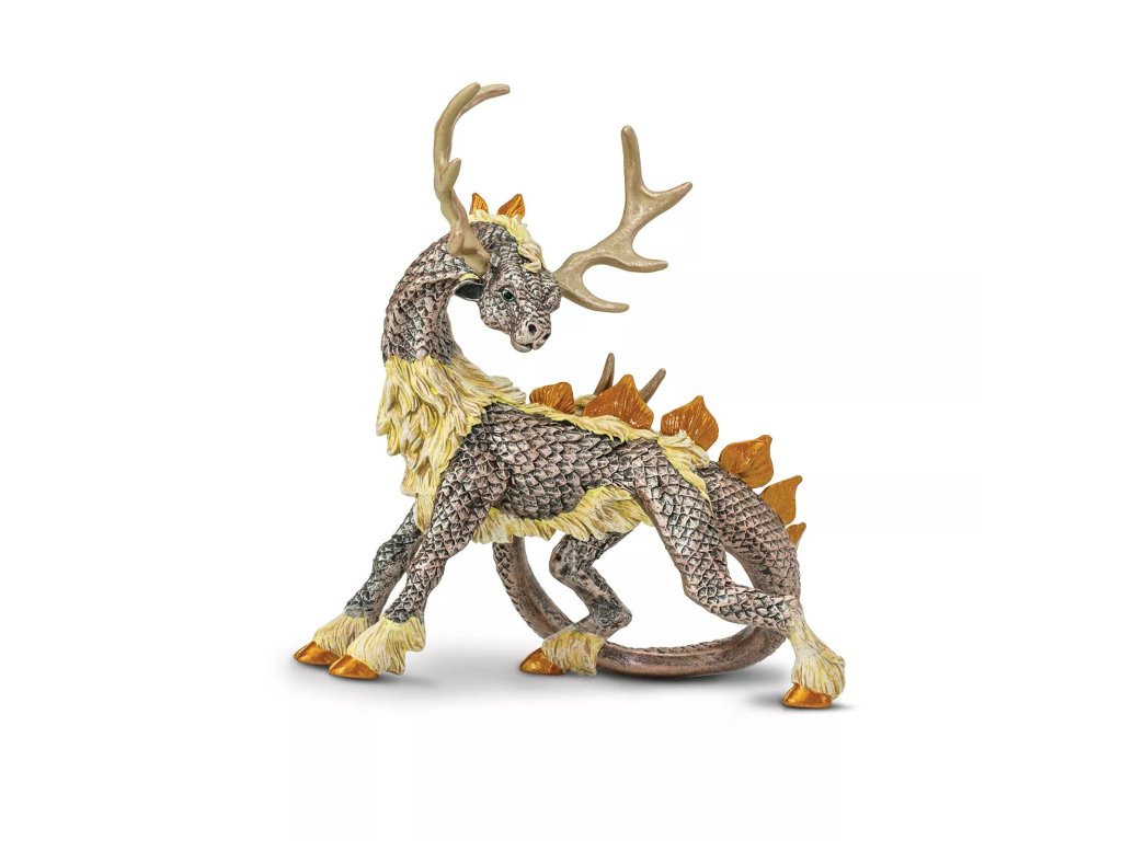 Model združuje luske, bodice in dolg rep zmaja z rogovi, kopiti in dlako jelena. Precizna, podrobna izdelava poudarja kontrast med plenilsko močjo in plašno naravo bitja, kar daje figuri značaj, primeren za zbiratelje in za igro.