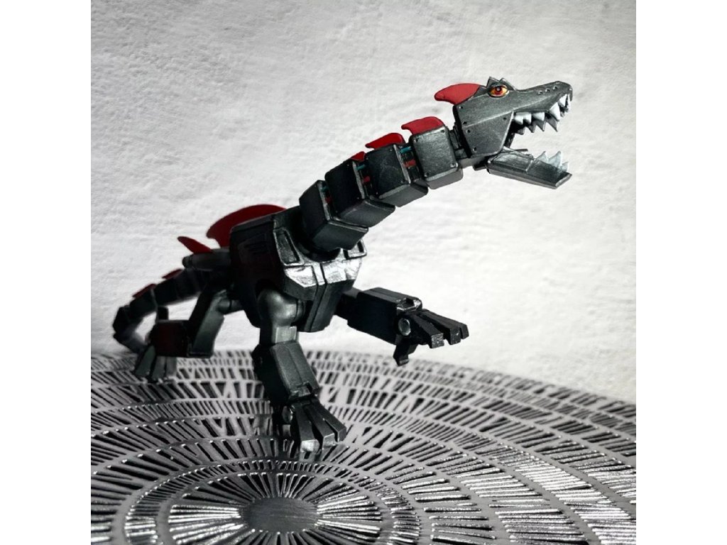 Futuristična figurica, ki predstavlja mehaničnega zmaja in združuje motive fantazije z industrijsko obdelavo. Stilska zasnova in več členovska konstrukcija podpirata ustvarjalno igro in nazorne prikaze.