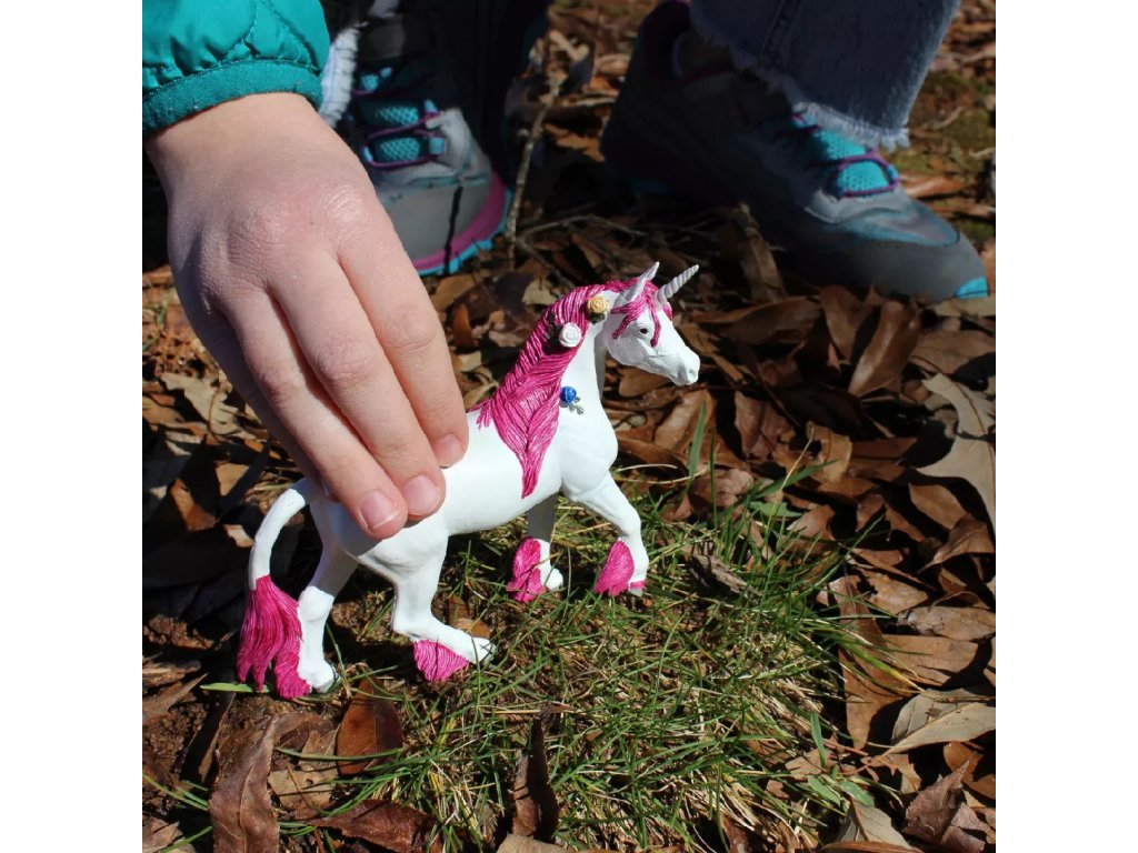 Roza samorog, čudovito belo bitje z vijoličnimi detajli. Samorogi so običajno tiha bitja; roza primerek predstavlja temperamentno vejo družine. Živo obarvane grive se v zgodbah prenašajo iz generacije v generacijo skupaj z željo po potovanjih in dogodivščinah.