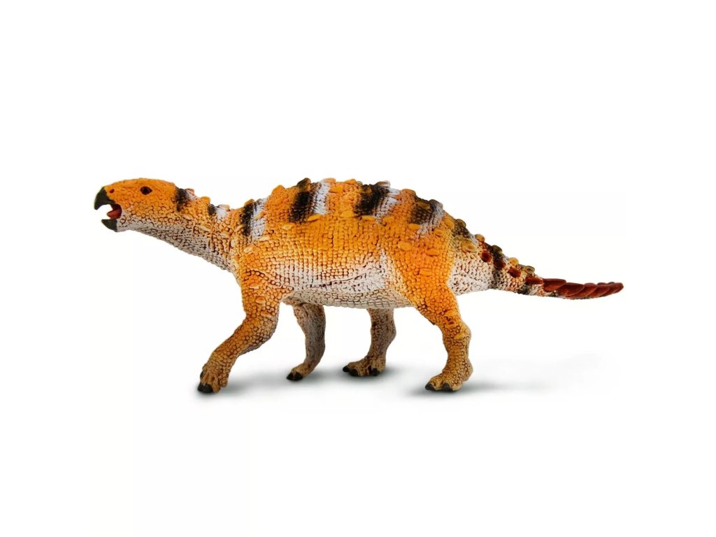 Figura, ki prikazuje Stegourosa, edinstvenega ankilozavra iz pozne krede s kratkim repom s sploščenimi rezili na vsaki strani. Podrobna zasnova podpira kombinacijo igre in nazornega prikaza paleontoloških oblik.