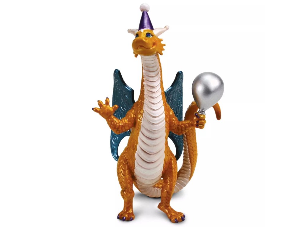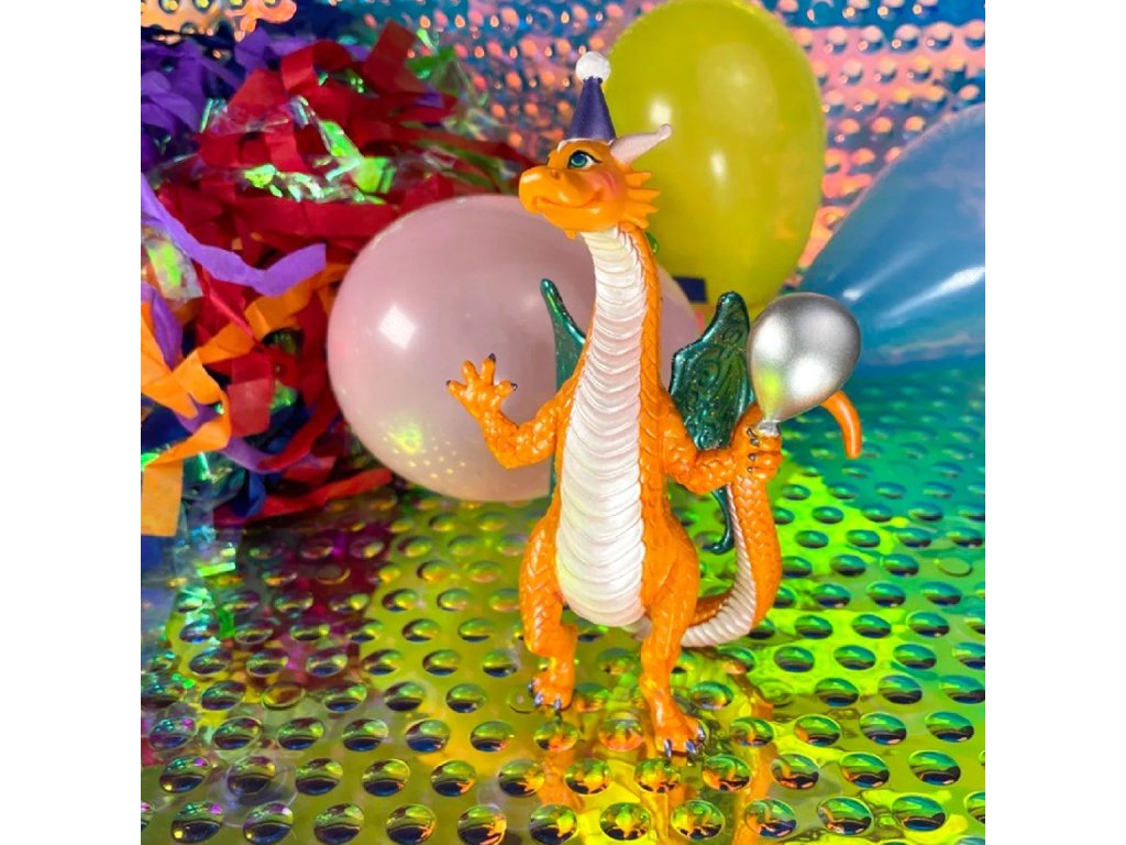 Vesela figurica zmaja za zabavo, namenjena kot dekoracija za rojstnodnevne zabave in druge zabavne dogodke. Kompaktna zasnova, primerna za razstavljanje in prosto igro.