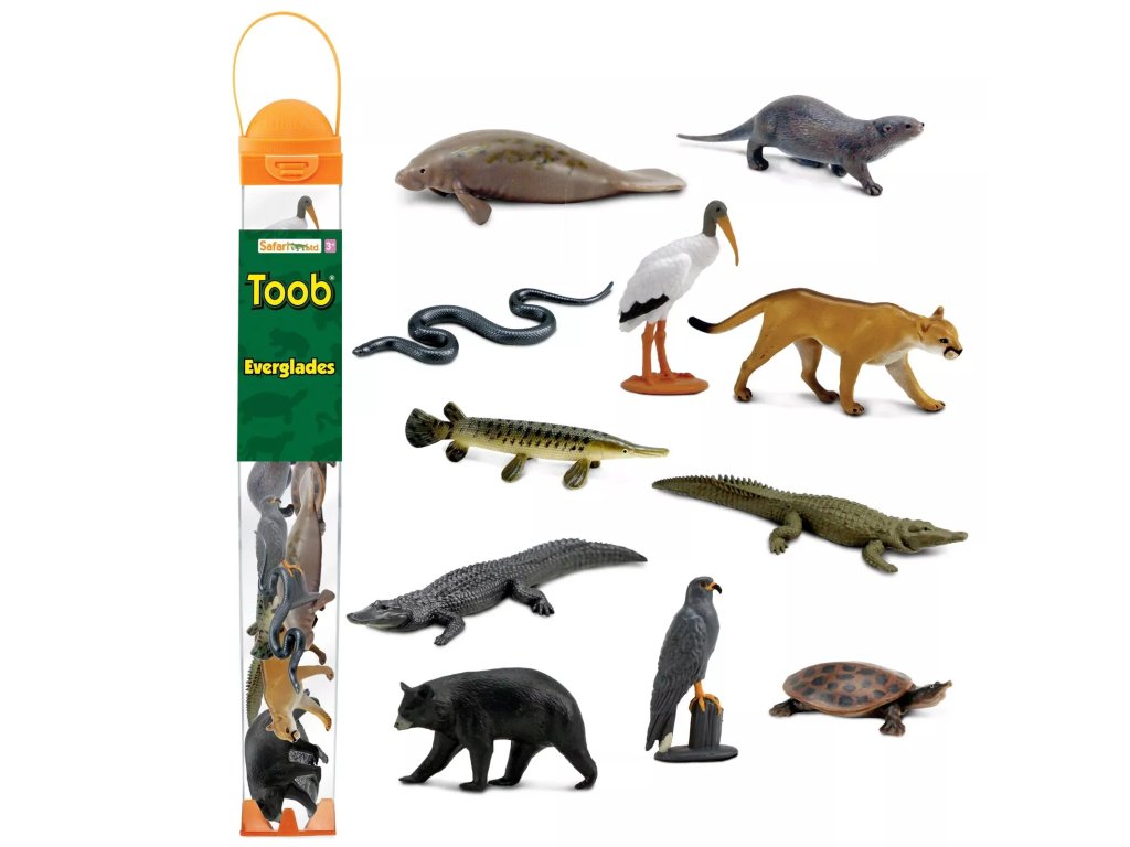 Narodni park Everglades se nahaja v južnem delu Floride in je znan po obsežnih mokriščih ter bogati favni in flori. Ta tuba vsebuje zbirko 11 plastičnih figuric, ki prikazujejo živali, ki jih lahko srečate v parku.