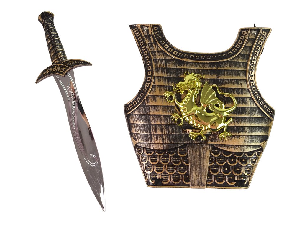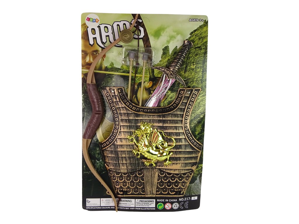 V tem kompletu najdete zlato samurajsko oklep z motivom zmaja. Zadnji del je opremljen z elastičnimi trakovci, zaradi katerih se kostum enostavno prilagodi otrokovemu telesu. Meč ima udoben ročaj z različnimi vzorci, a to še ni vse! Paket vključuje tudi lok, ki omogoča natančno streljanje na daljavo.