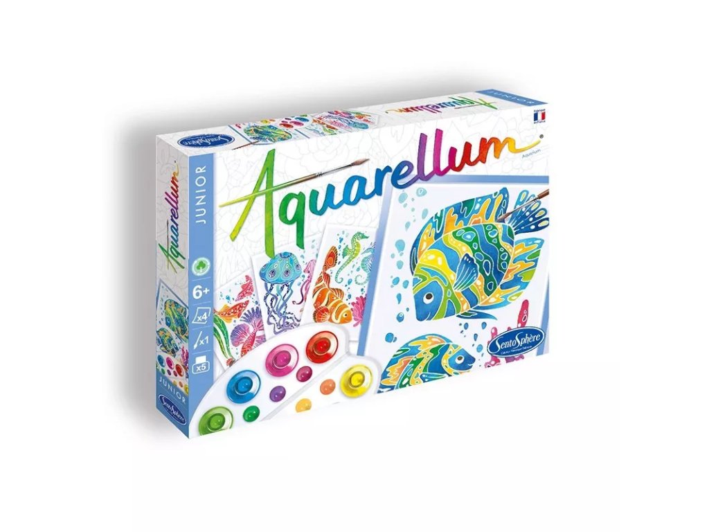 Ustvarjalni komplet za slikanje z akvareli z motivom življenja v akvariju. Namenjen je razvoju risarskih spretnosti in občutljivega zaznavanja barv.