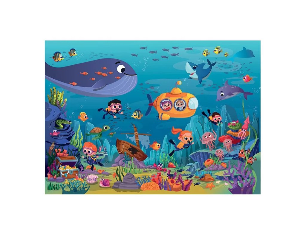 Izvirno ilustrirana sestavljanka z motivom morskega življenja francoske znamke Sentosphere, namenjena deklicam in dečkom, ki jih zanimajo igra in izobraževanje.