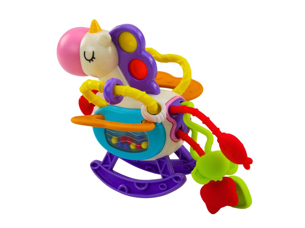 Senzorična igrača konjiček z gumijastimi deli in ropotuljico