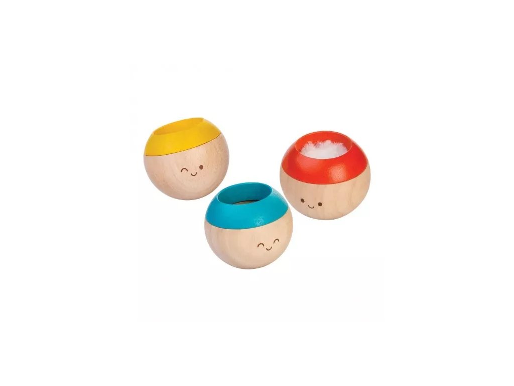 Tri različne vrste senzoričnih krogel za urjenje vidnih, slušnih in taktilnih spretnosti. Krogle so v treh barvnih različicah za lažjo orientacijo. Dimenzije: 6 x 6 x 5,4 cm. Primerno za otroke od 6 mesecev.