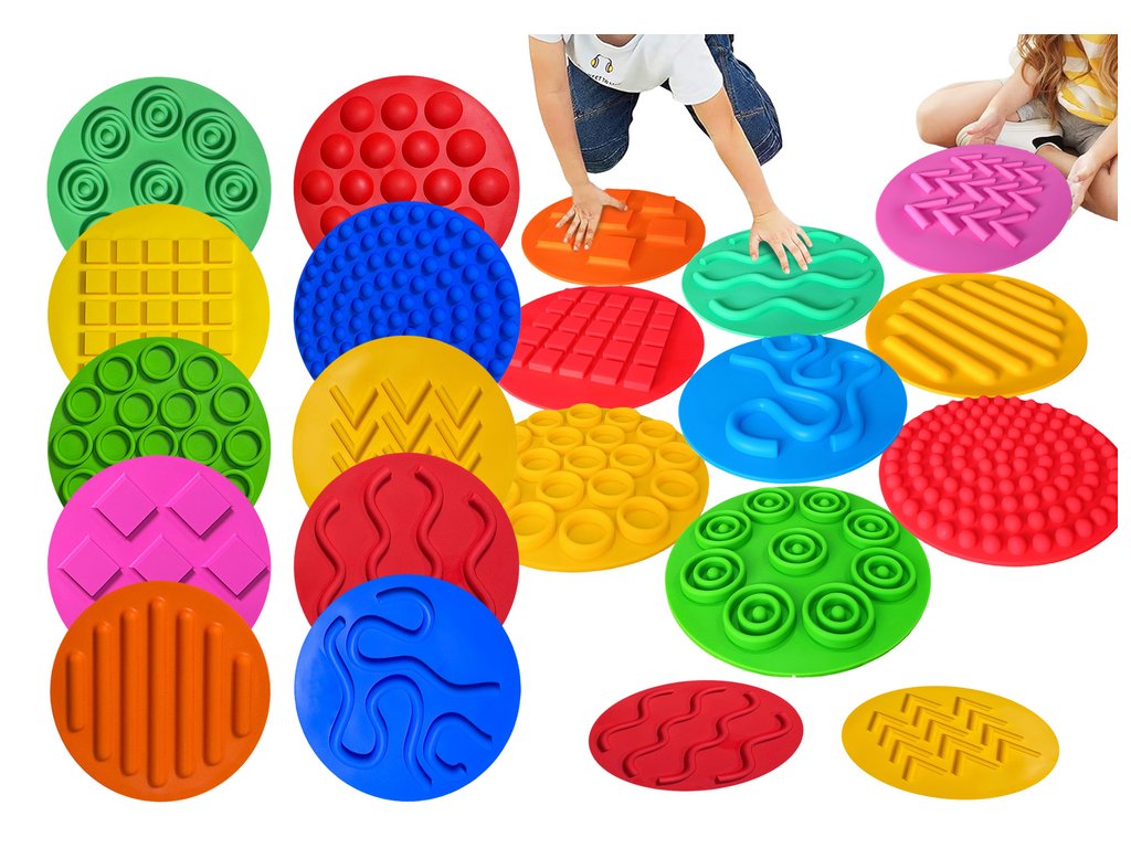 Komplet je sestavljen iz 10 diskov , vsak z edinstveno teksturo in barvo, ki omogoča različne senzorične aktivnosti. Otroci se lahko dotikajo, primerjajo, prepoznavajo različne površine, kar podpira razvoj njihovega taktilnega zaznavanja in koordinacije gibov .