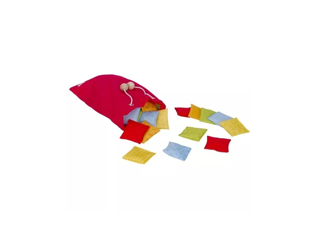 Komplet 20 majhnih tekstilnih blazinic, namenjenih tipni igri, ki razvija otrokov čut in pozornost.