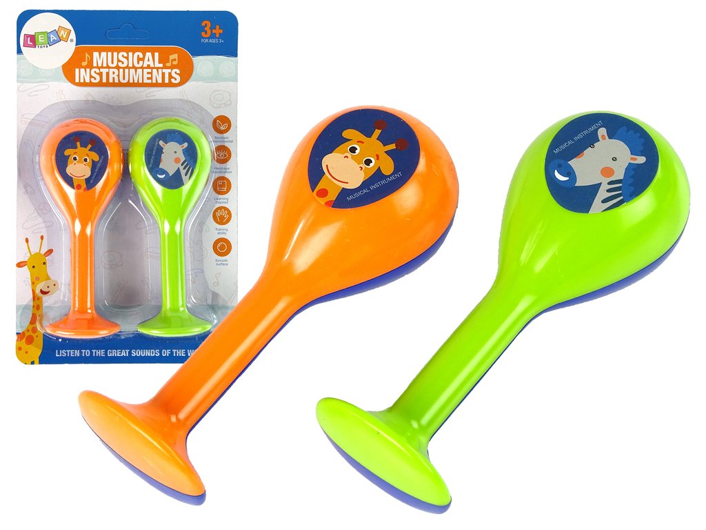 Set vsebuje dva ropotuljica z motivom male žirafe in zebre. Ko vaš otrok potrese z njima, bo slišal značilen šum. Pobarvana sta v čudovitih, barvitih odtenkih.