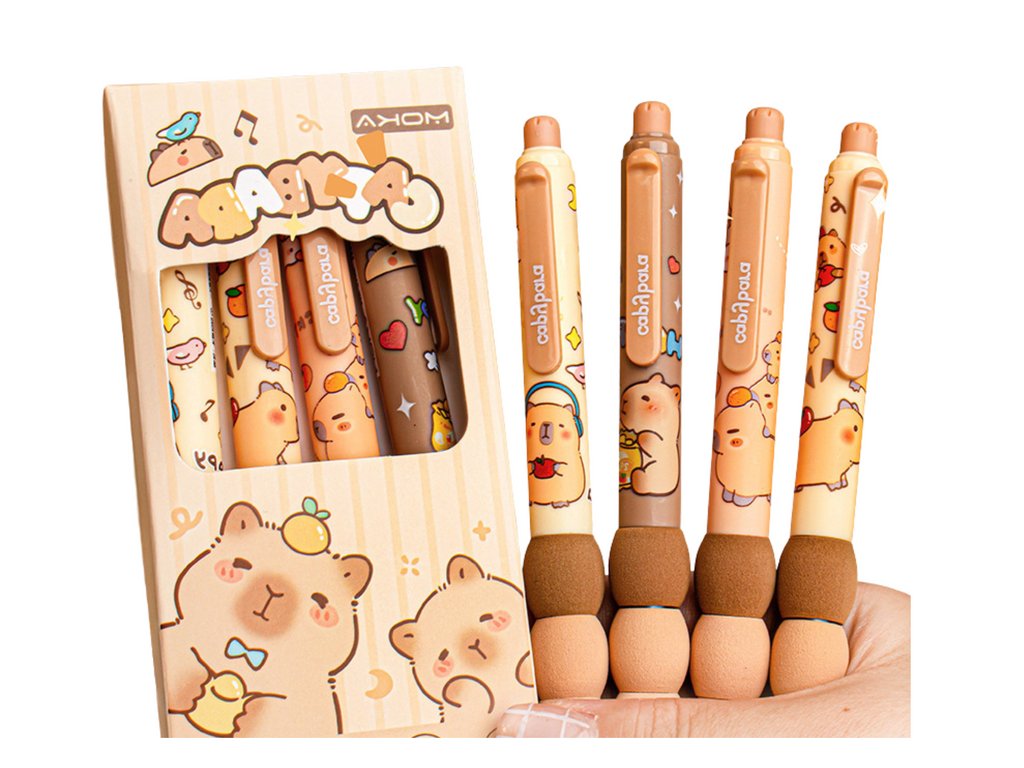 Vsako pisalo je skrbno oblikovano in njihov eleganten dizajn skupaj z ljubkim motivom kapibare jim daje edinstven značaj. Zahvaljujoč ergonomski obliki in udobnim prijemom se pisala popolnoma prilegajo roki, kar je idealno za dolgotrajno pisanje, skiciranje ali zapisovanje.