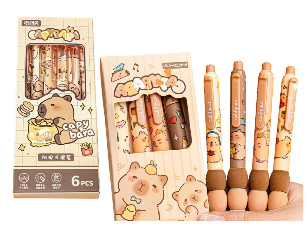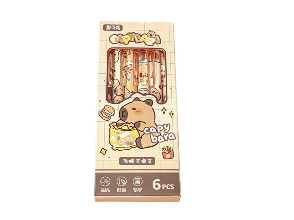 Set peresnic Capybara je odlična izbira za vse ljubitelje teh ljubkih živalic in za vse, ki cenite elegantne pisarniške dodatke. Set vsebuje 6 barvnih pisal, ki pišejo v značilni modri barvi, kar zagotavlja gladko in udobno pisanje po različnih površinah.