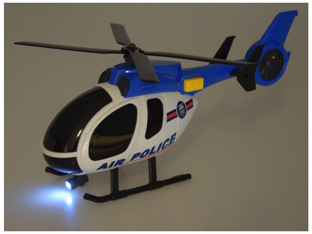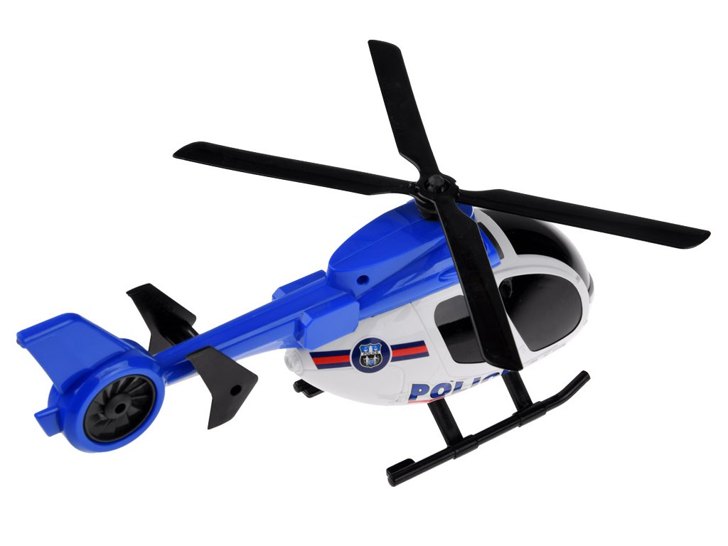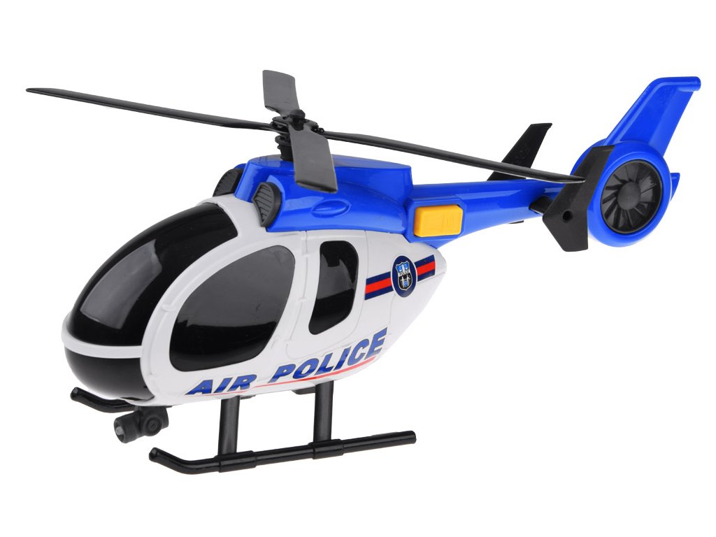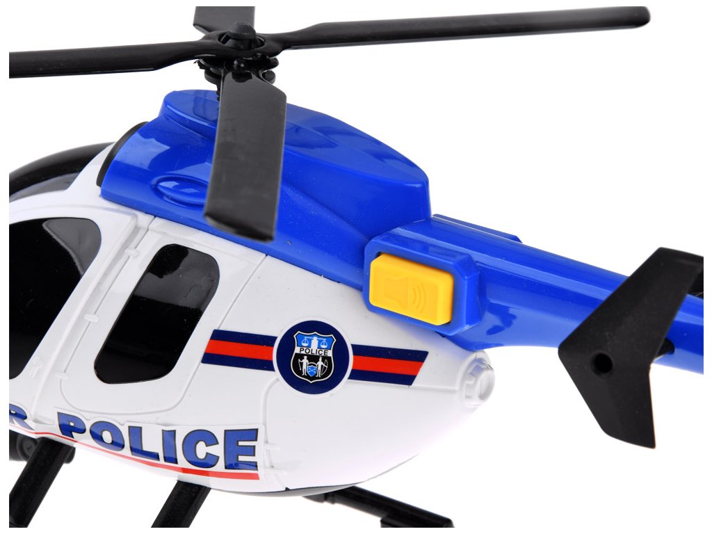 Premikajoča se policijska vozila so idealna izbira za male ljubitelje posebnih služb. Set vsebuje avtomobilček v modri barvi in helikopter, ki bo odlično dopolnil vsako policijsko akcijo. Policijski avto je v celoti izdelan iz plastike, premika se na gumijastih kolesih, kar omogoča enostavno manevriranje vozila. Dodatna prednost seta je helikopter. Leteči stroj ima zvočne učinke, ki jih spremljajo utripajoče luči spredaj in zadaj, kar zagotovo popestri igro. Zvok se sproži z rumenim gumbom, nameščenim na zgornjem delu helikopterja. Ob pritisku na gumb se zasliši zvok delujočega helikopterja in zvok sirene.