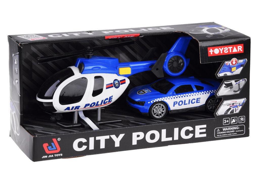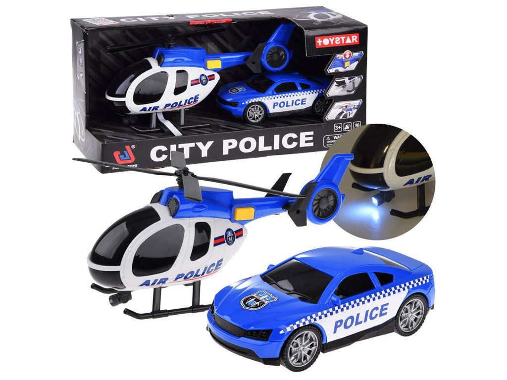 Set policijskih vozil - avto in helikopter z zvokom in lučjo