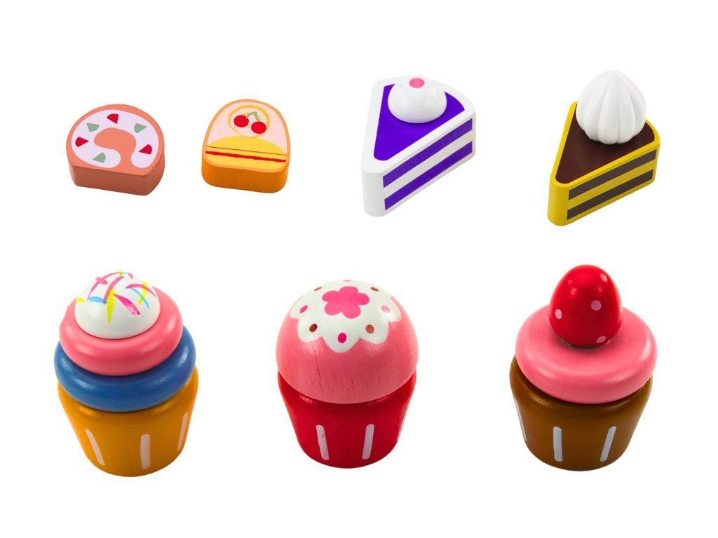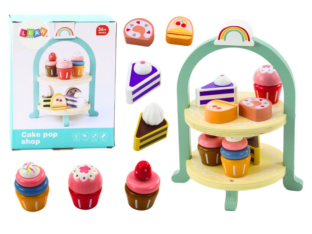 Leseni desertni set je elegantna in očarljiva igrača, ki uvaja otroke v svet slaščic in igre kuhanja. Set vsebuje stilsko stojalo za slaščice, ki opravlja tako dekorativno kot tudi praktično funkcijo, ter dodaja čar otroški sobi ali igralnici. Na stojalu so razstavljene različne lesene slaščice, kot so simpatične torte, mafini in kolači, ki očarajo s precizno izdelavo in poudarkom na podrobnostih.