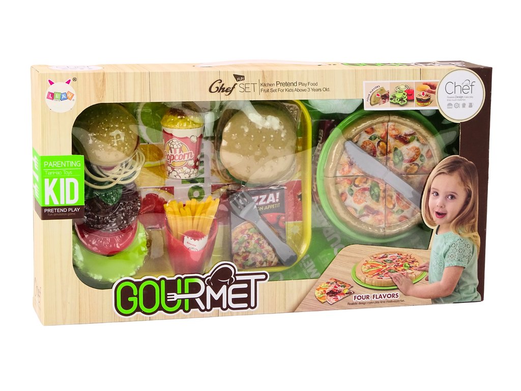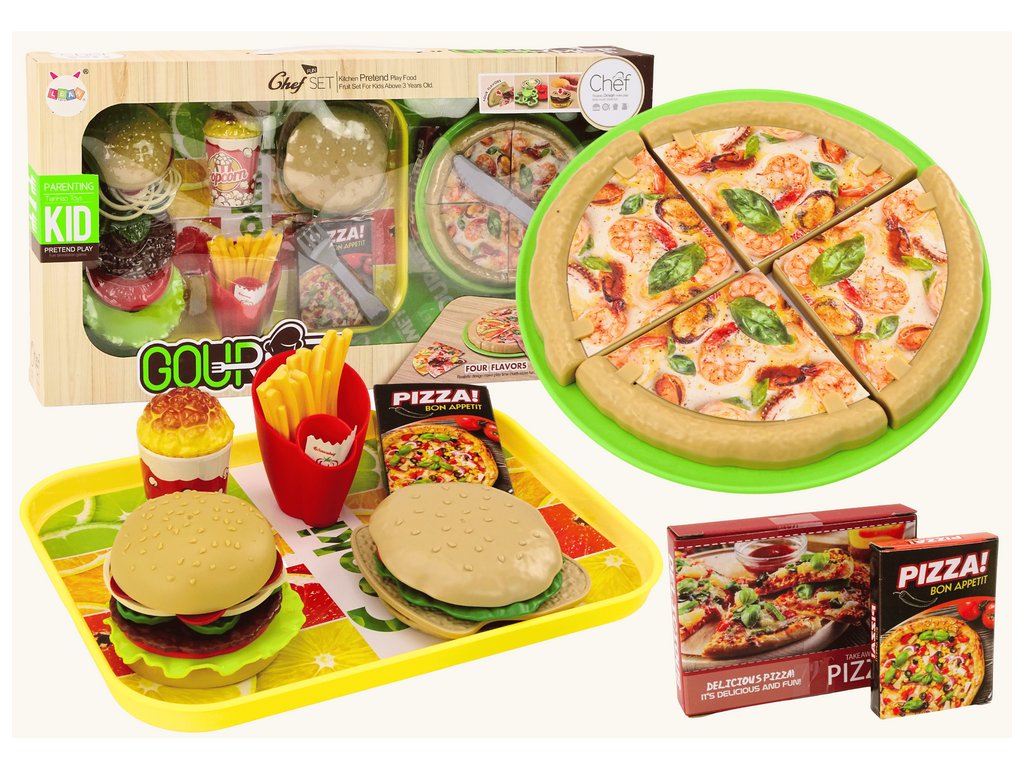 Poleg glavnih jedi komplet vključuje tudi druge dodatke, ki dopolnjujejo avtentičnost in vzdušje restavracije s hitro hrano. Ta set spodbuja otroke k razvoju domišljije in ustvarjalnosti skozi posnemanje delavcev hitre prehrane. Lahko pripravljajo naročila, strežejo jedi in se pretvarjajo, da vodijo svojo restavracijo.