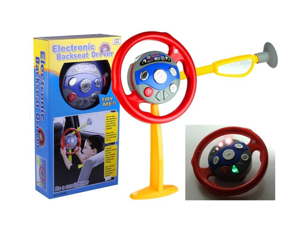 - Vsi dobro vemo, kako se otroci med dolgočasno vožnjo v avtu pogosto dolgočasijo. Zato vam predstavljamo izvirno in senzacionalno rešitev - prenosni volan za majhnega voznika, ki ga je enostavno namestiti na okno zadnjega sedeža. Volan igrača lahko otrok drži v rokah, se nanj trdno nasloni s podporo med nogami ali pa ga pritrdi na okno s pomočjo priseska.