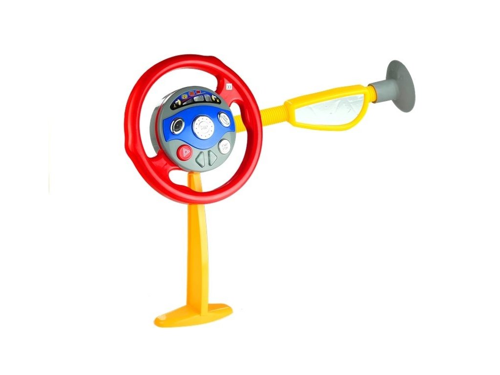 - Omeniti velja, da je igrača opremljena z ogledalcem, ki volanu daje občutek realnosti, ter zanimivimi svetlobnimi in zvočnimi učinki, ki spremljajo igro. Z našo igračo se bo vaš malček počutil kot pravi voznik v svojem avtomobilu.