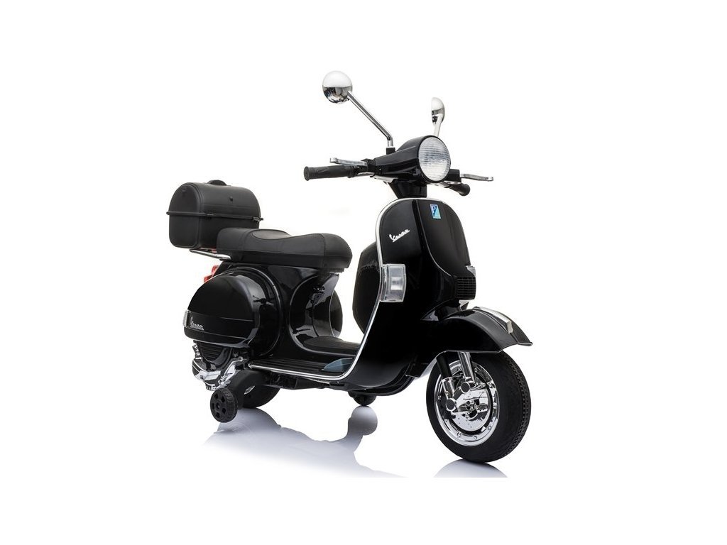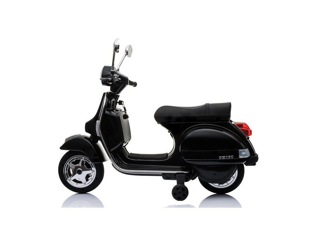 Kdo ne pozna skuterja znamke Vespa? Ta legendarni skuter lahko vozi tudi vaš otrok, zahvaljujoč temu licenciranemu modelu. Skuter ima kakovosten sedež prevlečen z mehkim ekološkim usnjem in mehka kolesa EVA. Poleg tega ima čudovite sprednje LED luči in lahko predvaja MP3 datoteke, tako da lahko otrok med vožnjo posluša svojo najljubšo zgodbo in hkrati izboljšuje svoje vozniške veščine.