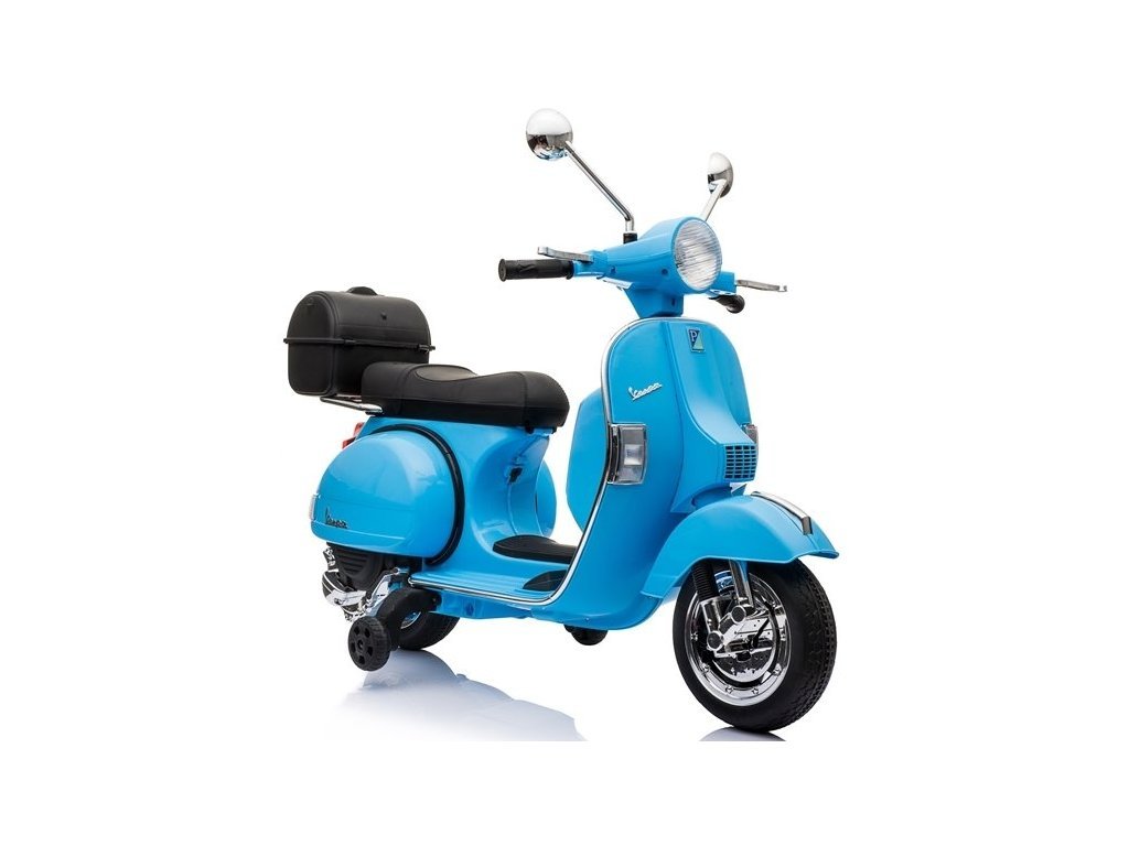 Kdo ne pozna skuterja znamke Vespa? Ta legendarni skuter lahko vozi tudi vaš otrok, zahvaljujoč temu licenčnemu modelu. Skuter ima kakovosten sedež oblazinjen z mehkim ekološkim usnjem in mehka EVA kolesa. Poleg tega ima čudovite sprednje LED luči in omogoča predvajanje MP3 datotek, tako da lahko otrok med vožnjo posluša svojo najljubšo pravljico in obenem izpopolnjuje svoje vozniške spretnosti.