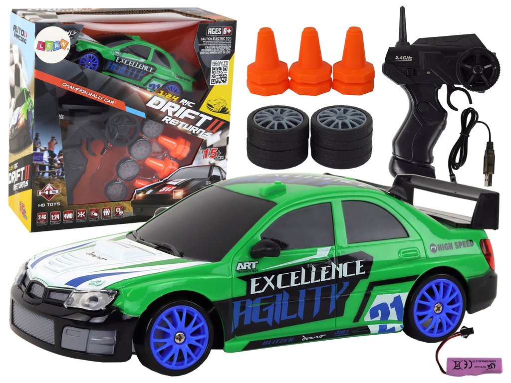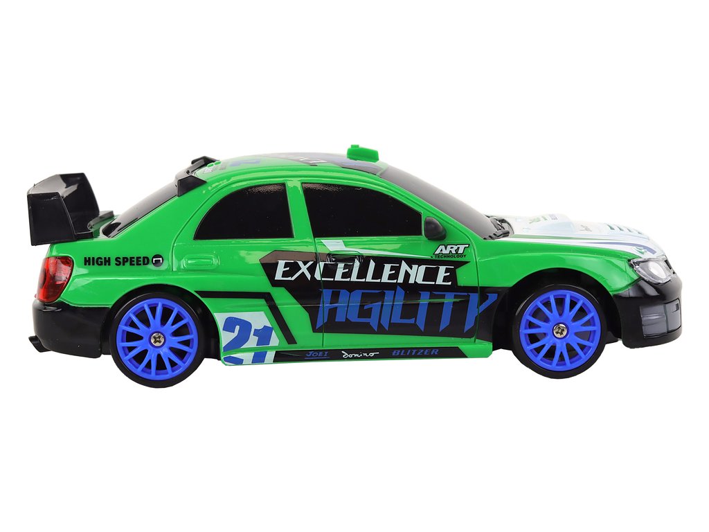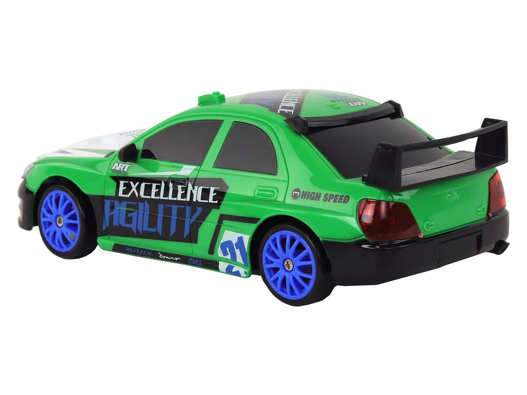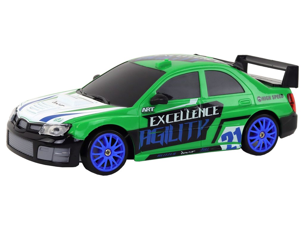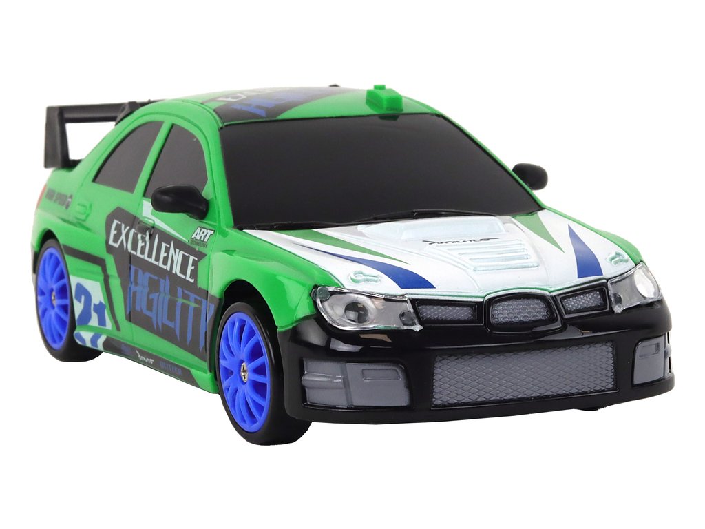 Športni avtomobilček na daljinsko vodenje R/C 1:24 z zamenljivimi kolesi zelen.