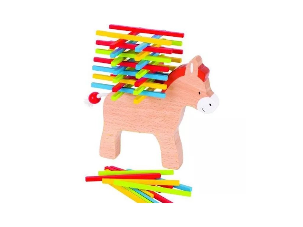 Igra za majhne in velike igralce, ki zahteva mirno roko, razsodnost in potrpežljivost. Cilj je naložiti na oslička čim več pisanih lesenih palčk, ne da bi pri tem padle že nameščene palčke.