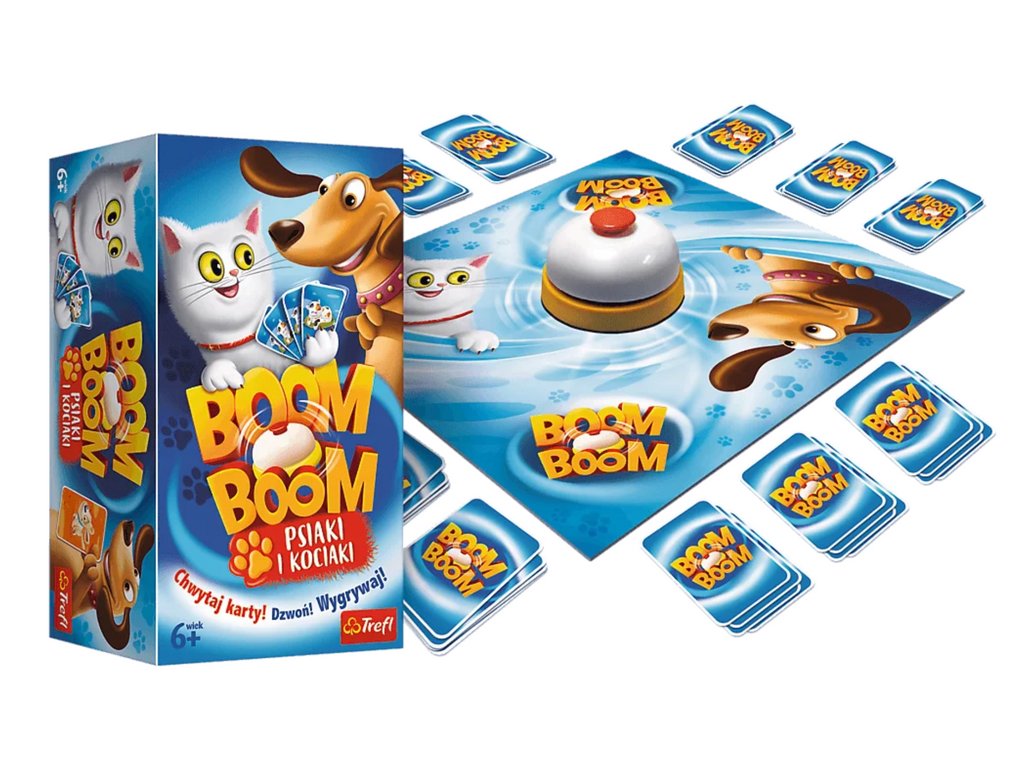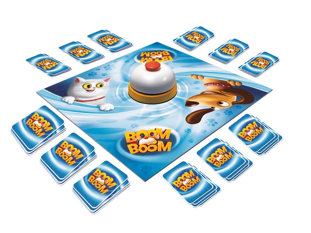 V igri Boom Boom poskušajo igralci zbrati komplete enakih psov in mačk. Istočasno si vsi igralci izmenjajo karte v rokah s kartami na plošči. Po zbiranju kompleta igralec pozvoni na zvonec in s tem označi zaključek naloge. Zdi se enostavno, vendar lahko igralci lovijo iste karte. Zmagovalec je prvi igralec, ki zbere predpisano število kompletov psov in mačk!