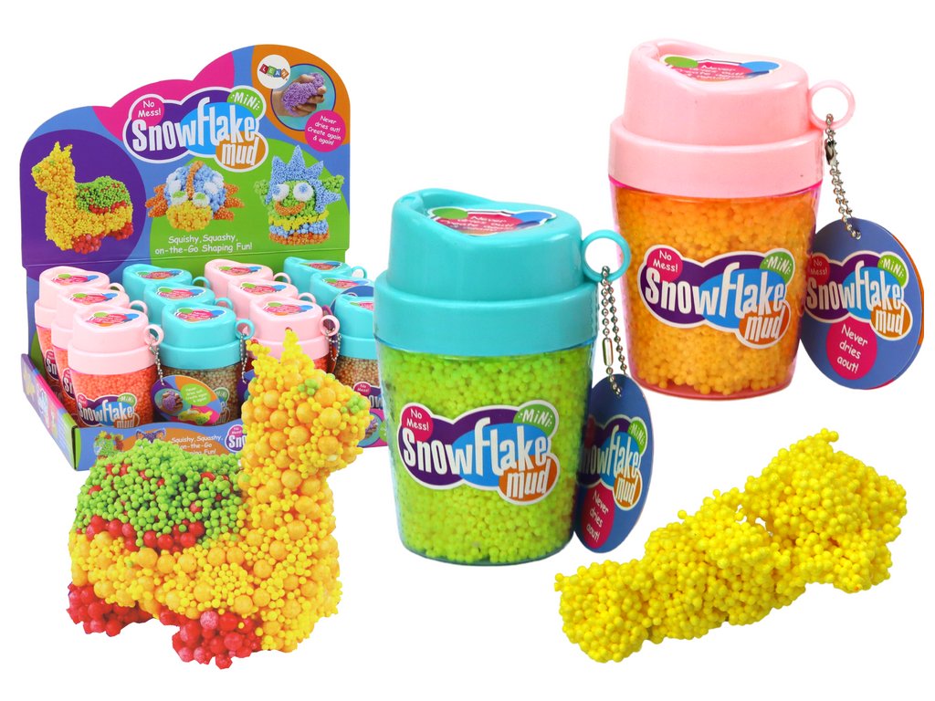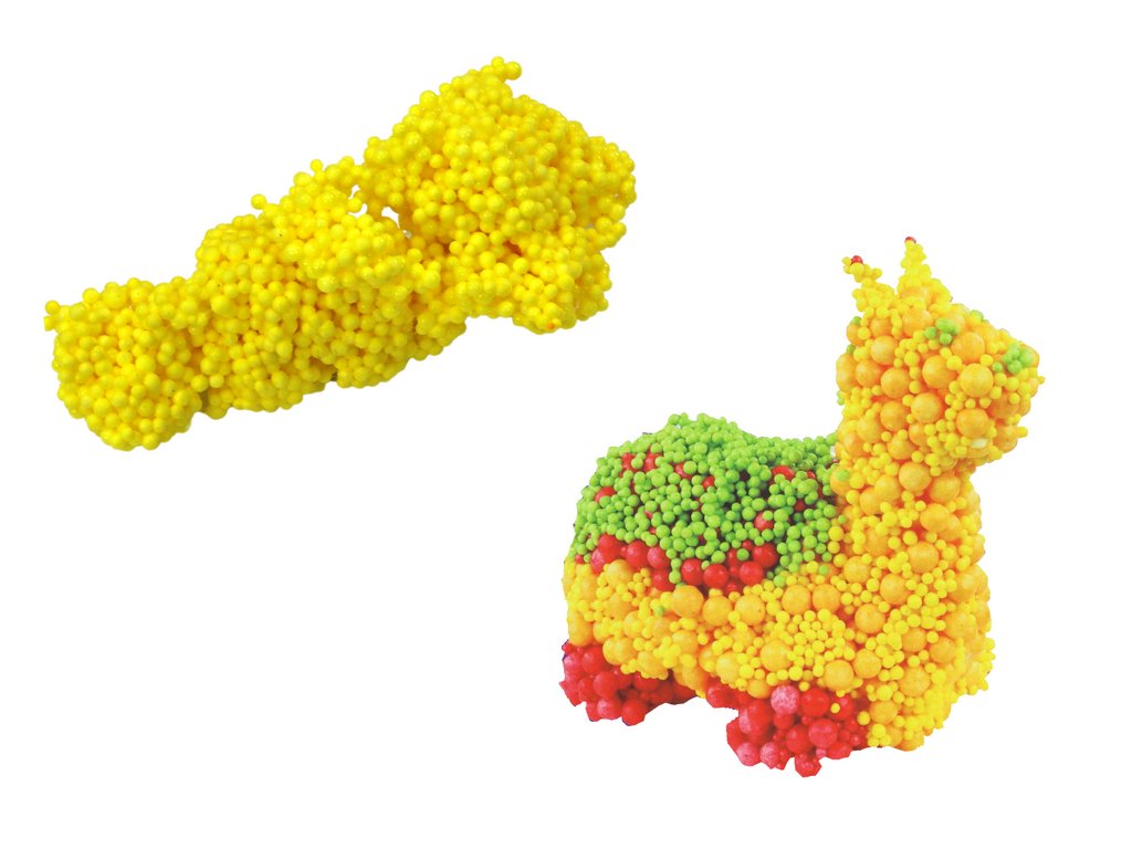 Rumene squishy kroglice iz polistirena! Te edinstvene kroglice so shranjene v praktičnem lončku in povezane s posebnim lepilom, ki ne pušča lepljive plasti na rokah, kar ustvarja kompaktno, enostavno oblikovalno maso.