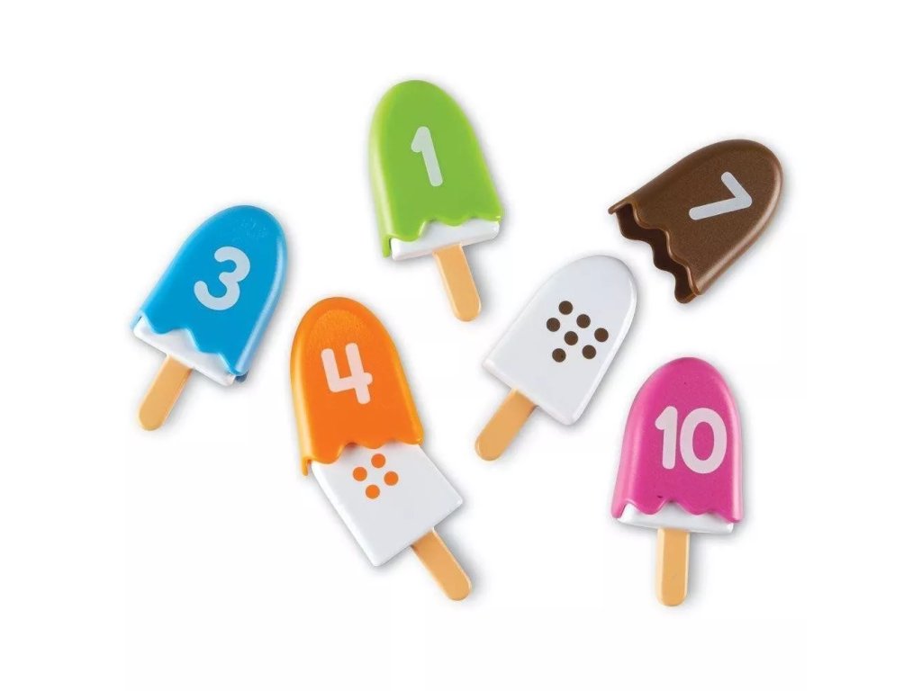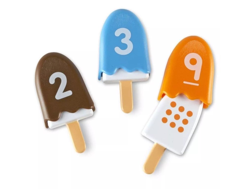 Izobraževalni set v obliki sladoledov pomaga otrokom vaditi štetje in prepoznavanje barv s preprostim sestavljanjem delov.