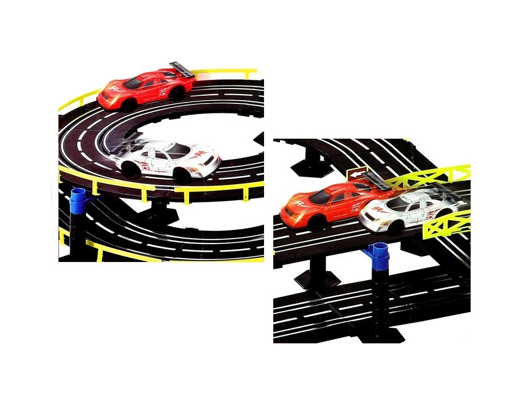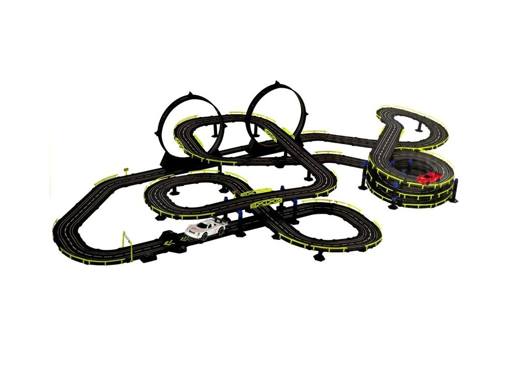 Velika avtomobilistična steza je sestavljena iz ostrih zavojev, osmic in 360-stopinjskih zank. Vključuje dve avtomobilčki v merilu 1:43, ki imata svetlobne učinke. V paketu sta dva krmilnika, ki sta odgovorna za vožnjo in hitrost avtomobilčkov.