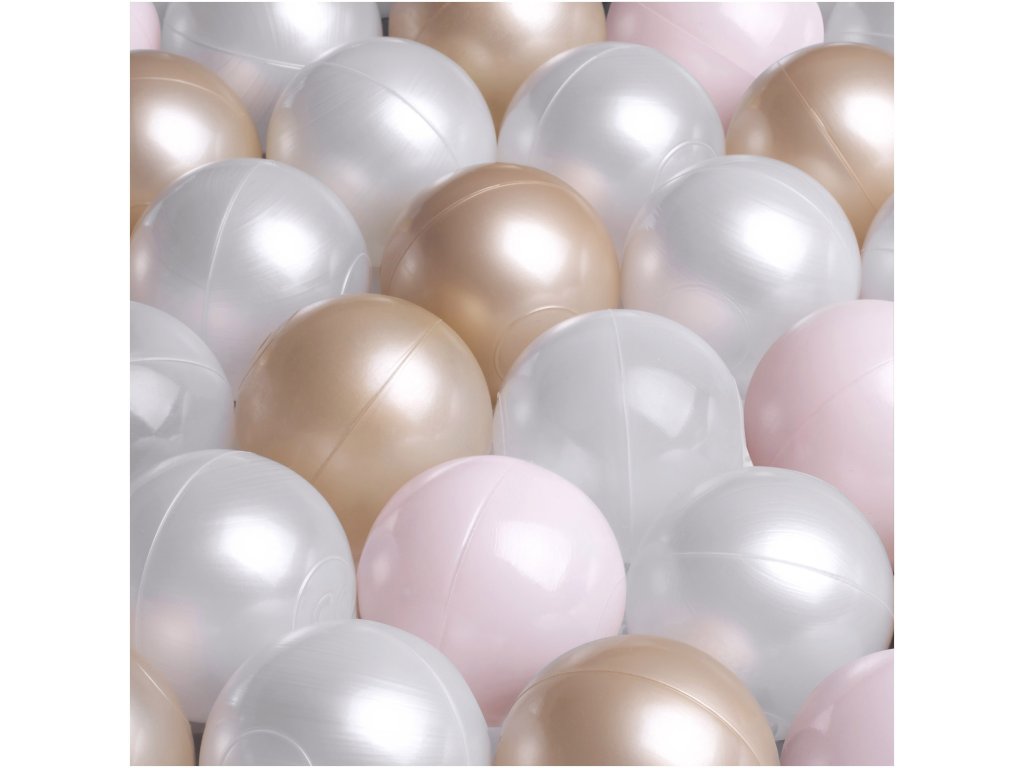 Dodatne informacije: Komplet vsebuje 300 kroglic v biserni, zlati in svetlo roza biserni barvi.
