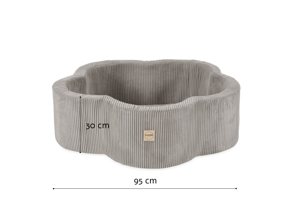 Potopite svojega otroka v morje zabave z našim suhim bazenom s kroglicami v obliki čudovitega cveta. Idealen za malčke v starosti 1,5–5 let — varno in trpežno zasnovan ob upoštevanju potreb otrok v razvoju. Žametna tkanina z izrazitimi navpičnimi črtami je letos hit. Visokokakovosten vrhunski material naredi naš suhi bazen popolno darilo.