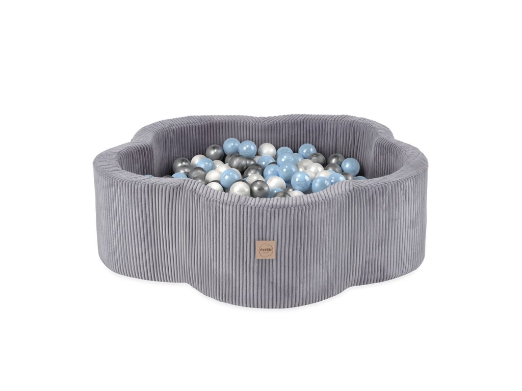 Suhi bazen Cvetlična cona 95 × 30 cm premium žamet siv in 300 žogic