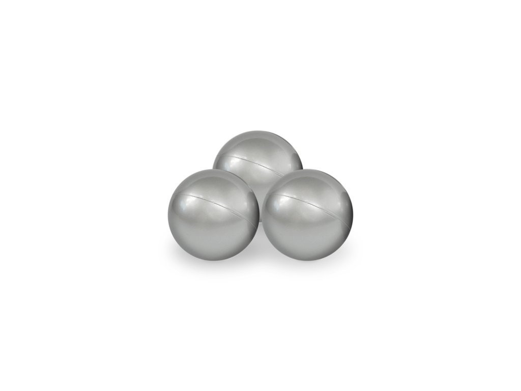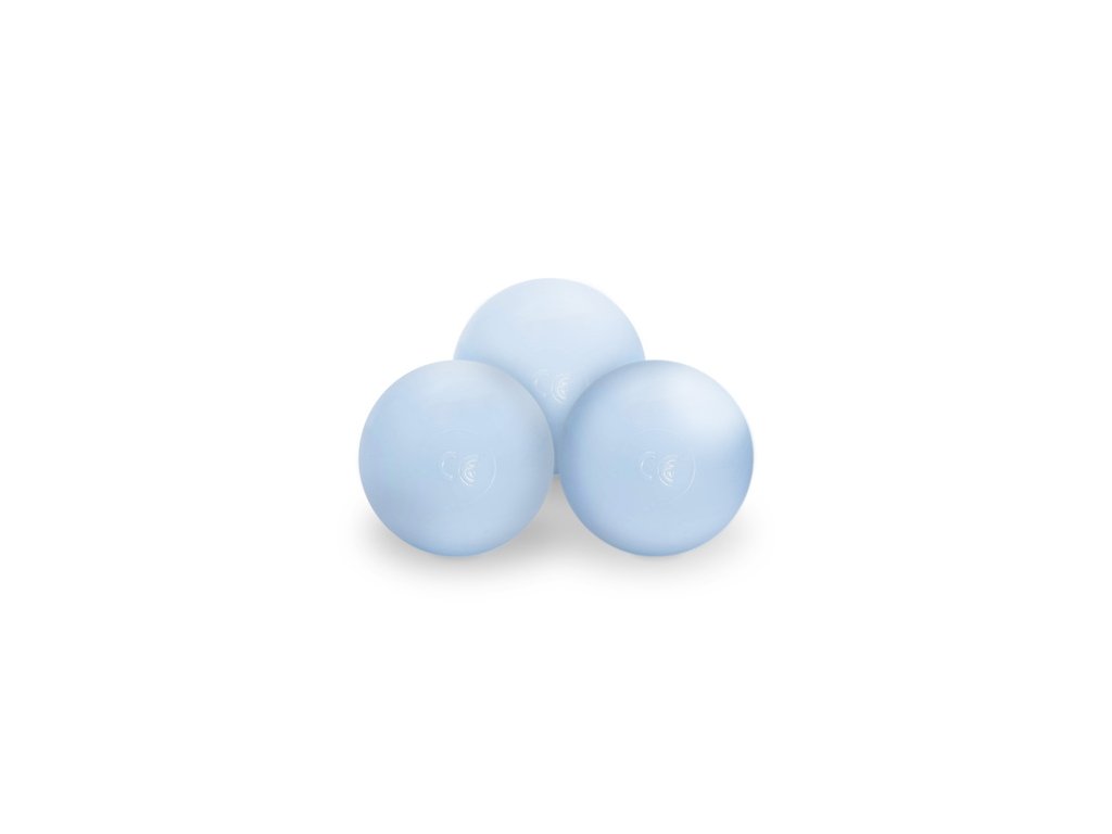 Komplet vsebuje 200 mehkih žogic v biserni, srebrni in svetlo modri barvi – idealna kombinacija za igrivo estetiko in varno igro.