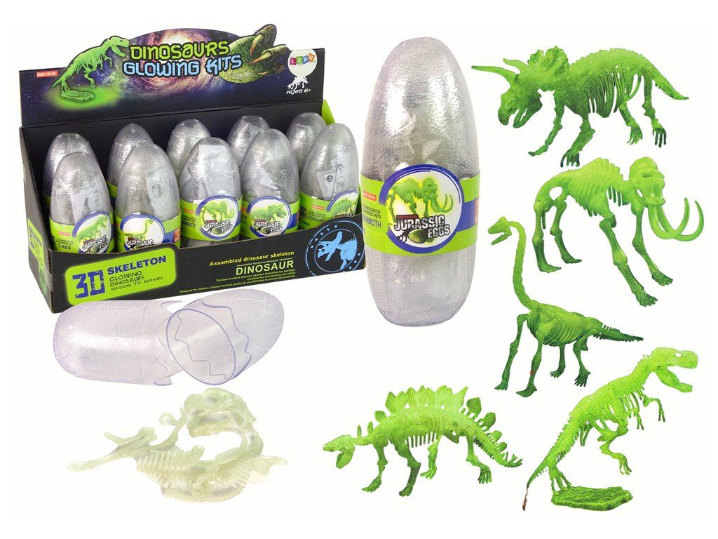 Ve tmě svítící dinosauří nebo mamutí skelet 3D v transparentním vejci