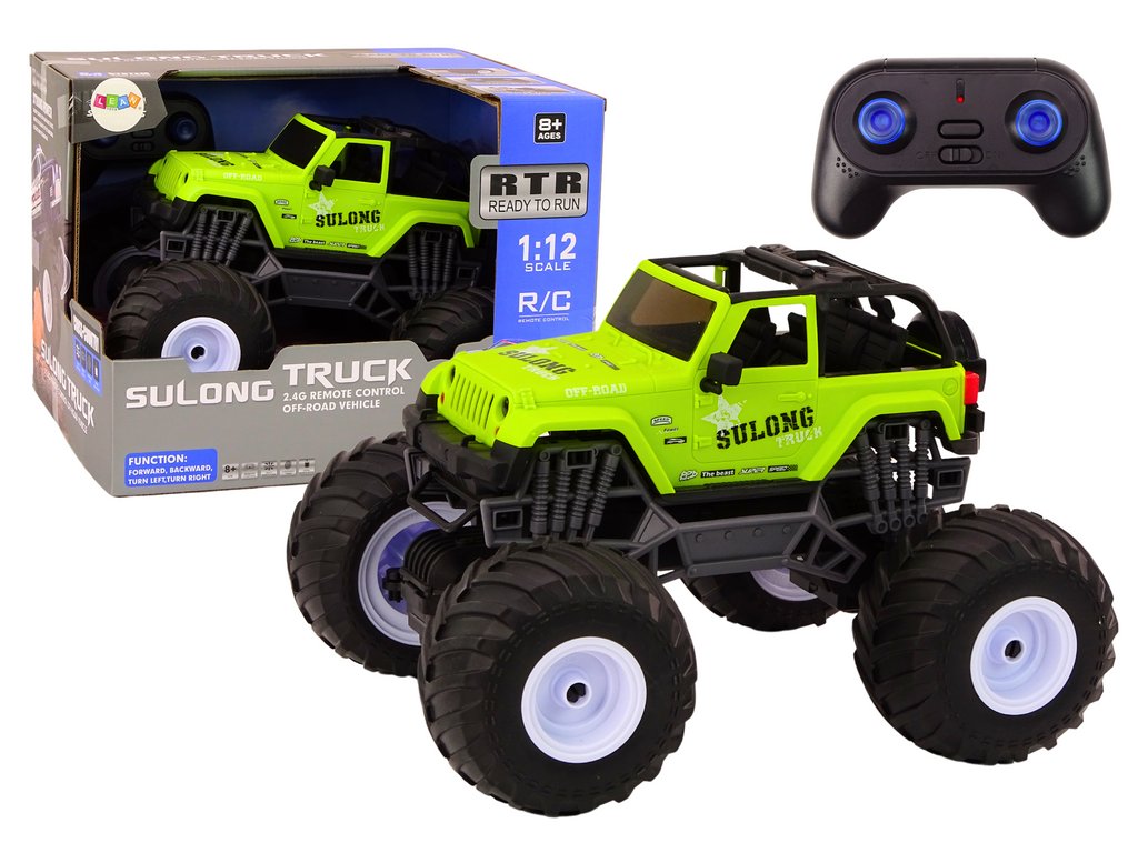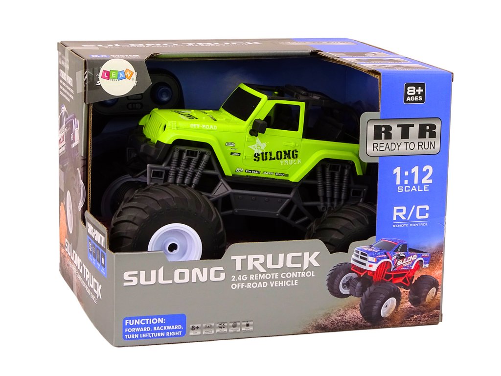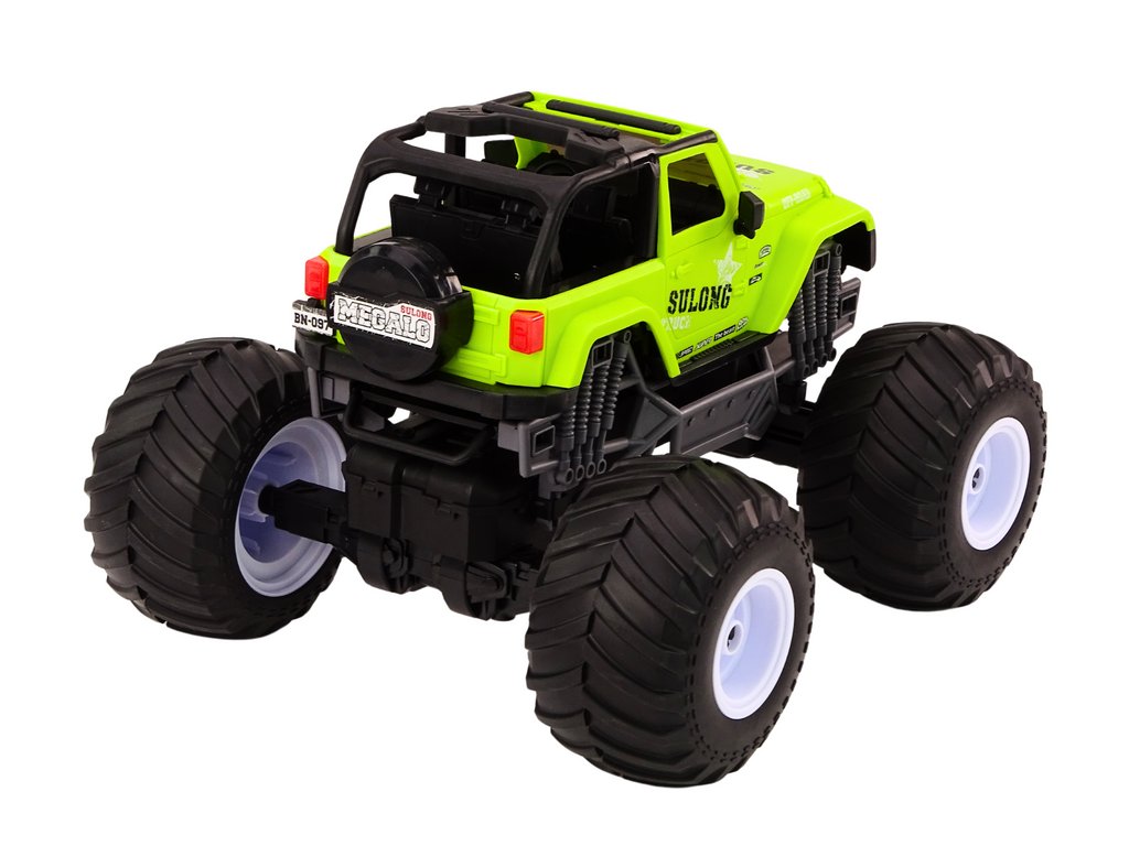 Terenski avto v zeleni barvi je sanje vsakega navdušenca nad daljinsko vodenimi vozili. Sestavljen v merilu 1:12, deluje impresivno za uporabnika in opazovalce.