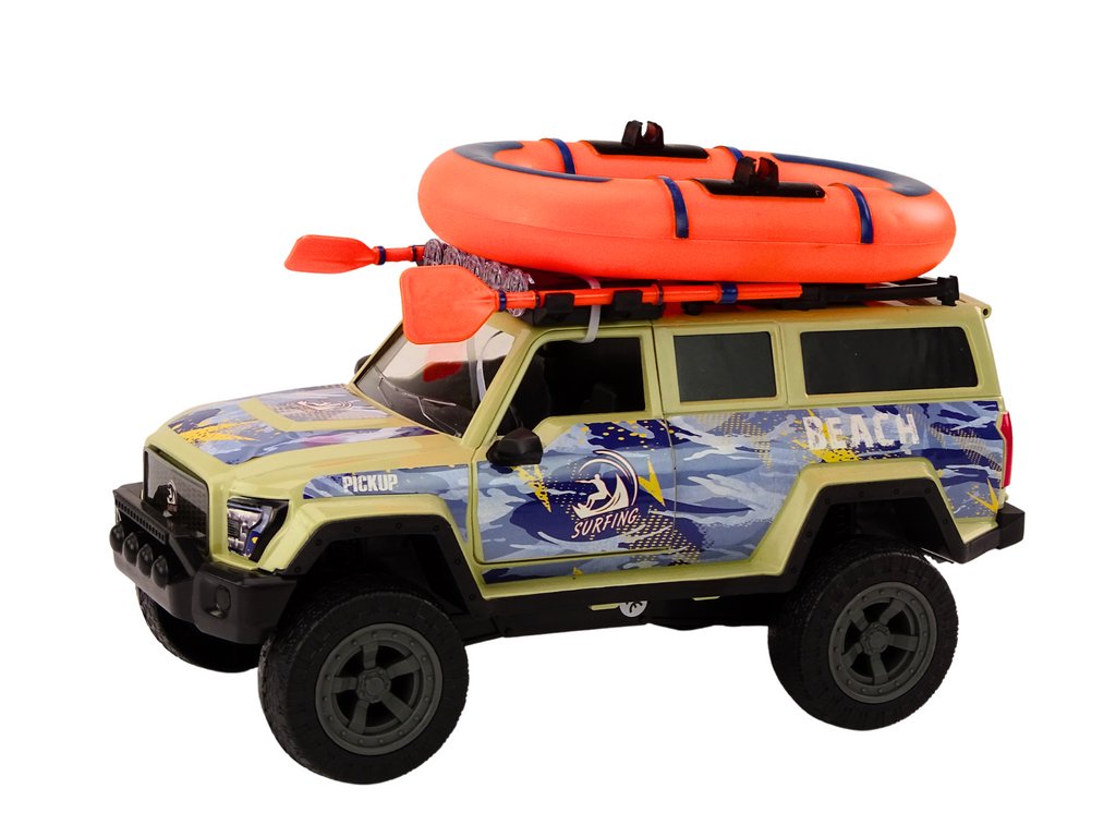 Terenski avto z dodatki - surf, napihljiv čoln in deska