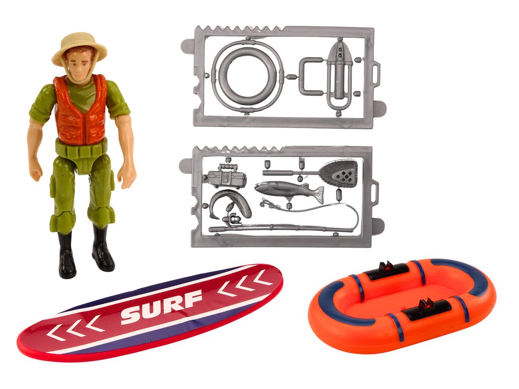 Set vključuje figuro surfača, plavalna dodatka in surf desko, kar otrokom omogoča igro različnih scenarijev reševalnih operacij na vodi in ustvarjalnih avantur. S tem kompletom lahko otroci prevzamejo vloge surfačev, ustvarjajo razburljive zgodbe in razvijajo svojo domišljijo.