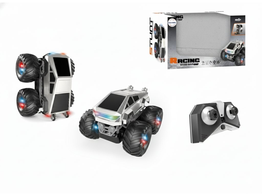 Terensko vozilo na daljinsko upravljanje Stunt Truck s svetlobo in glasbo srebrne barve MT1434