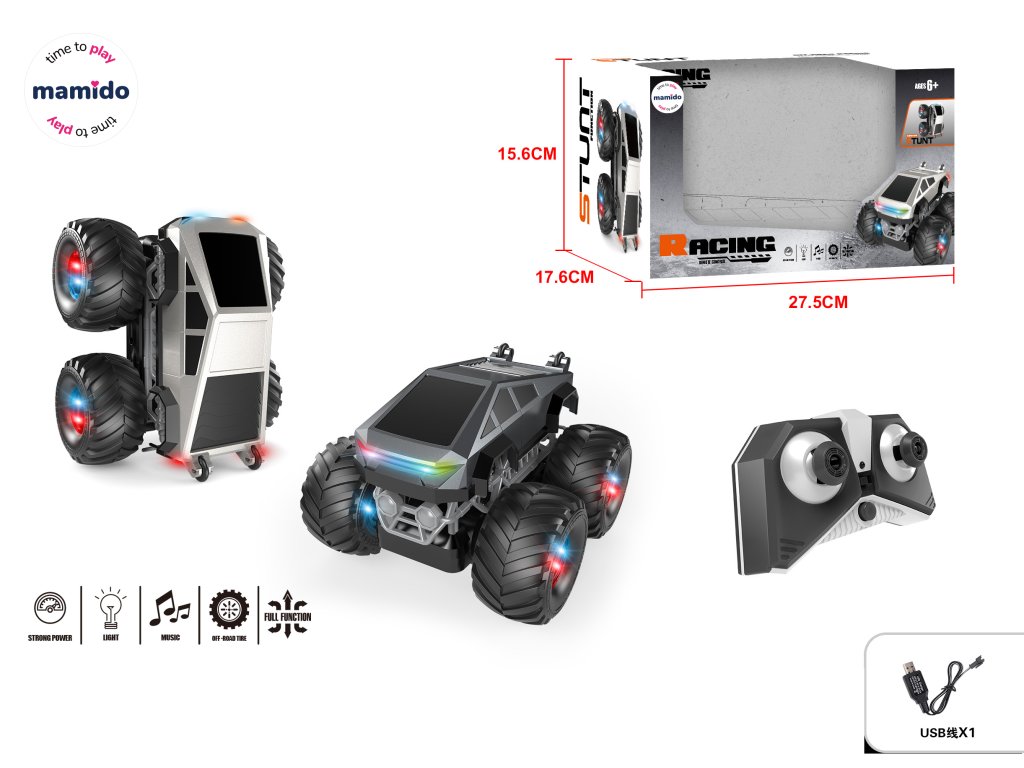 Terensko vozilo na daljinsko upravljanje kaskaderski tovornjak s lučmi in glasbo sivo MT1429