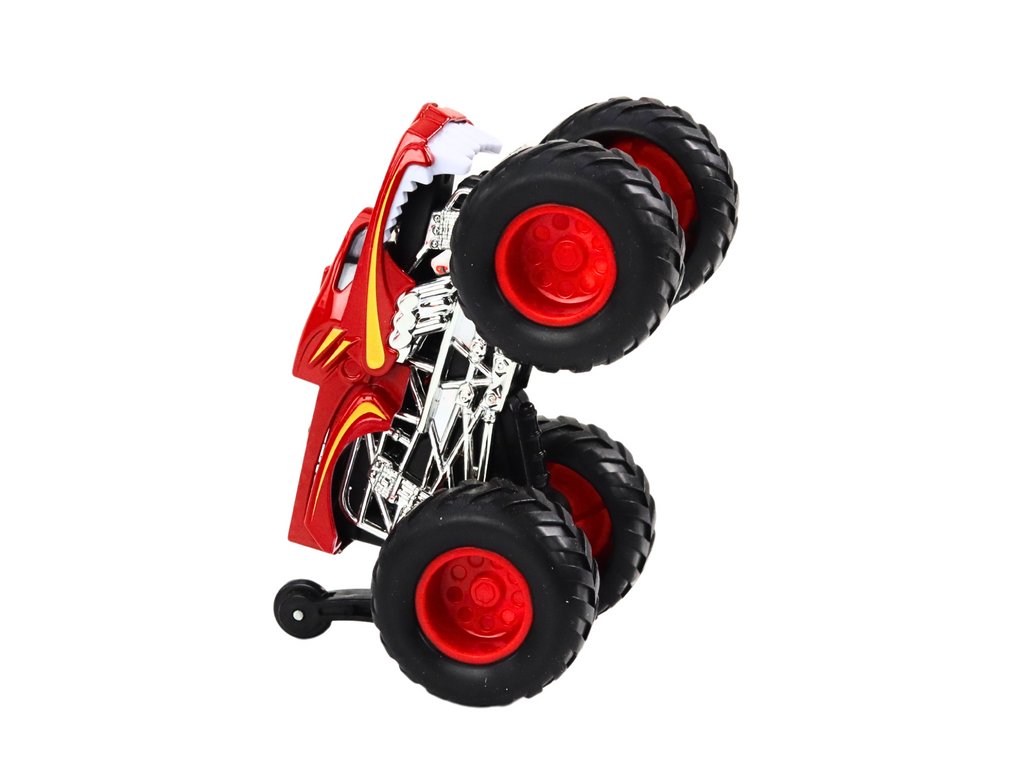 Ta terenski avtomobil ima trdno konstrukcijo, ki zagotavlja odpornost in vzdržljivost med intenzivno igro. Najbolj značilni del tega vozila so velika gumijasta kolesa. Te masivne, dobro profilirane pnevmatike zagotavljajo izvrstno oprijemljivost in stabilnost na različnih površinah. Zahvaljujoč njim bo vozilo enostavno premagalo neravnine terena, kar omogoča gladko in varno vožnjo.