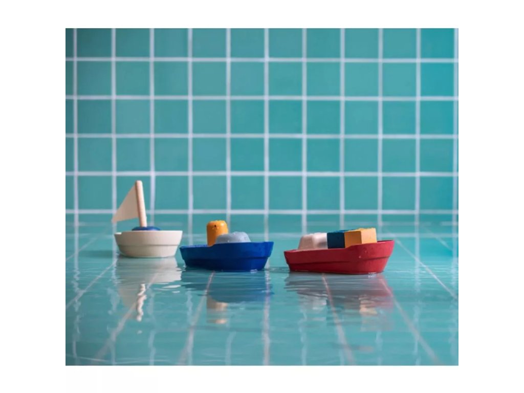 Trup ladje je izdelan iz naravnega kavčuka, kabina iz lesa PlanWood, zraven pa so še lesene kocke, ki dopolnjujejo dinamiko igre. Igrača je primerna za uporabo v kadi, bazenu in za igro v naravnih vodah.