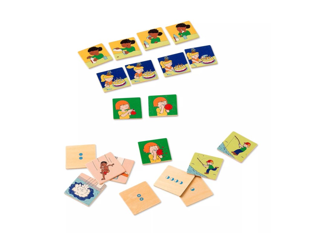 V vsakem krogu izberite štiri karte in jih razporedite tako, da bodo smiselne kot zaporedje dogodkov. Cilj je vaditi vrstni red dogodkov, vzročne zveze in besedno izražanje pri pripovedovanju.