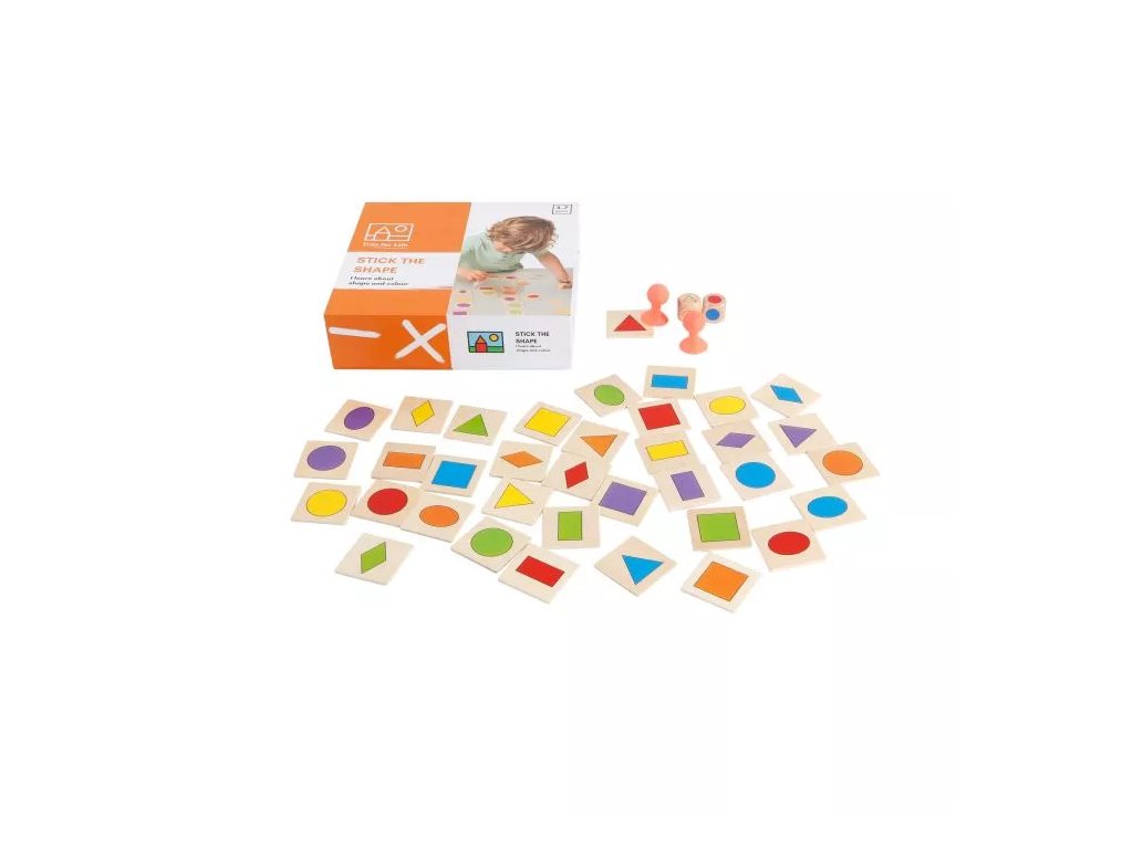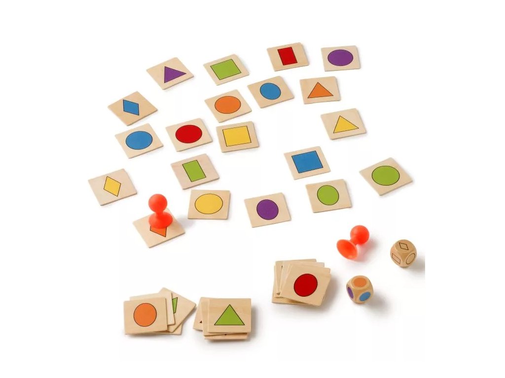 - 36 lesenih kartic (velikost 5 cm x 5 cm), 6 oblik in 6 barv