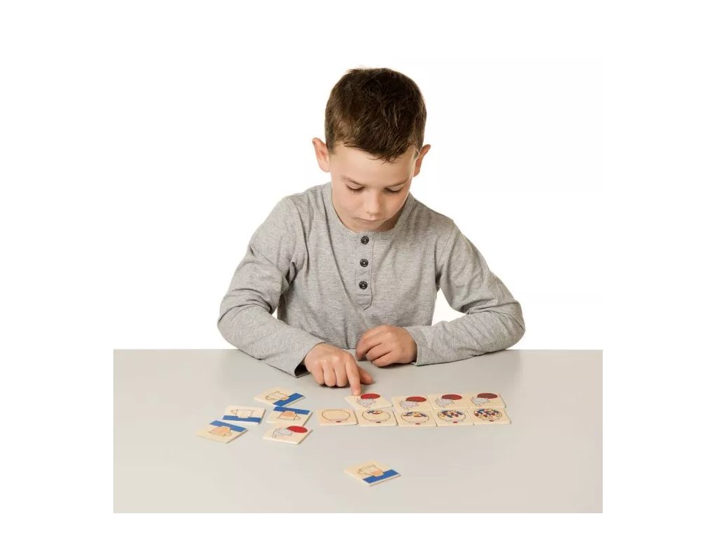 Razvrstite posamezne slike tako, da tvorijo niz od »praznih« do »polnih« in obratno. Med igro otroci usvajajo pojme, kot sta »več kot« in »manj kot«, hkrati pa vadijo logično razmišljanje, matematiko, motorične sposobnosti in potrpežljivost.