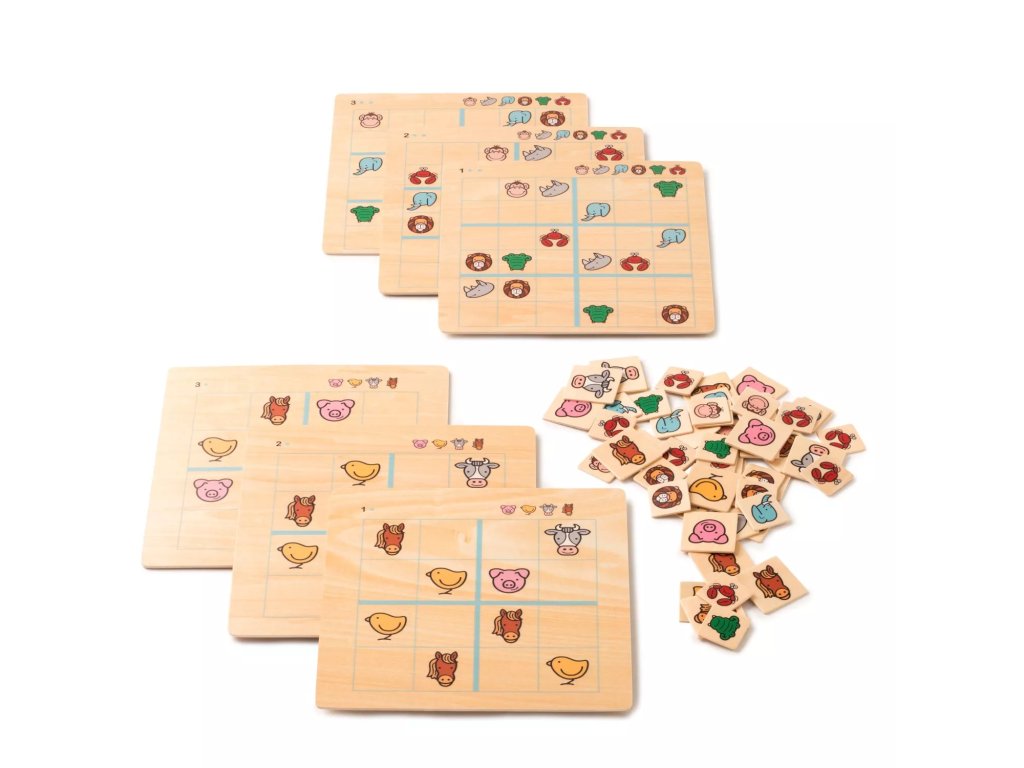 Igra temelji na principu znane igre Sudoku. V vsaki vrstici in stolpcu je lahko vsak element uporabljen samo enkrat. Otroci pri tej dejavnosti razvijajo analitično mišljenje, koncentracijo, logično razmišljanje in potrpežljivost.