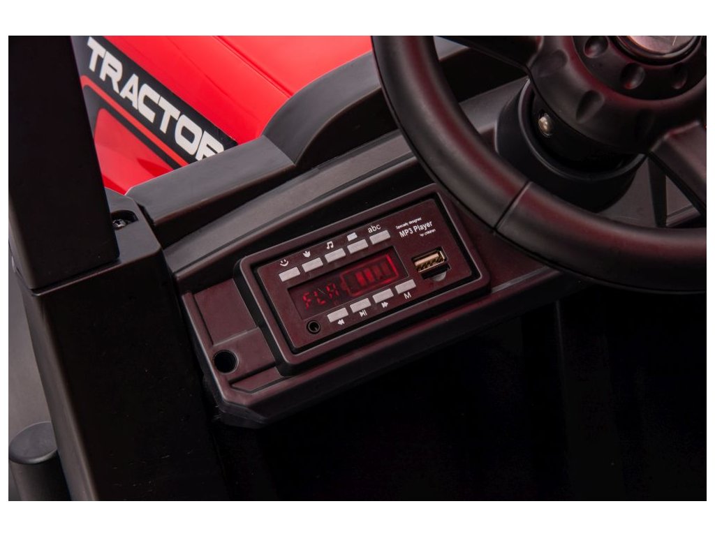 Električni traktor ne sme manjkati v nobeni otroški garaži. Vozilo poganjata dve bateriji s kapaciteto 12V 10Ah. Maksimalna obremenitev vozila je 35 kg. Med vožnjo bo otroka zagotovo navdušil glasbeni panel z MP3 in USB.