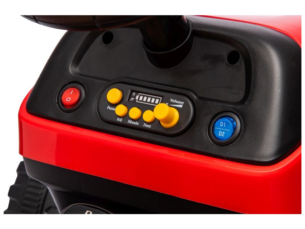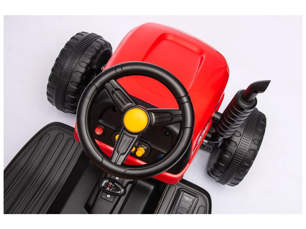 Električni traktor ne sme manjkati v nobeni otroški garaži. Vozilo poganja baterija s kapaciteto 12V 7Ah. Največja obremenitev vozila je 30 kg. Med vožnjo bo otroka zagotovo navdušil glasbeni panel z Bluetooth.